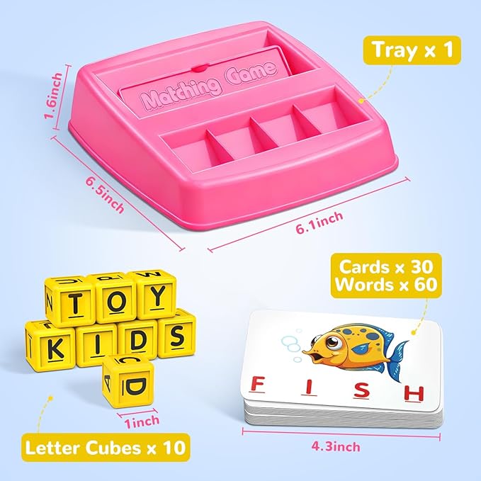 About This 【Best Early Educational Toys】- The matching letter game comes 30 flash cards with 60 words, 8 letter cubes,... Read more