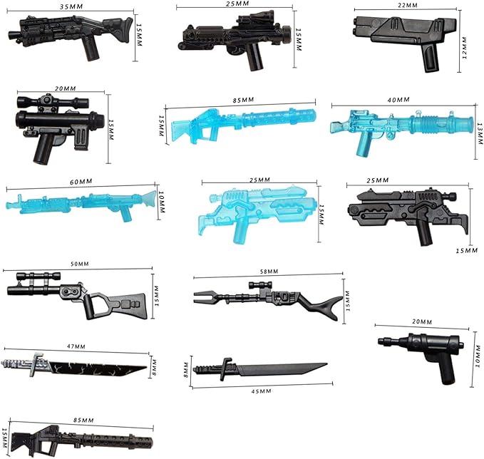 About This Sci-fi style figure weapon armor set, total 52pcs, including: various sci-fi style helmet masks, long swords, energy blasters,... Read more