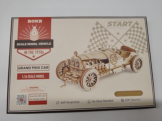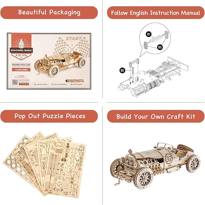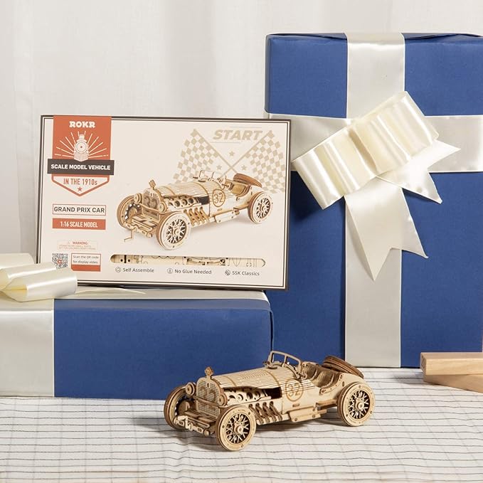 ROKR Model Car Kits Wooden 3D Puzzles Model Kits for Adults Educational Brain Teaser Assembly Model, Desk Decor/DIY Hobbies/Gifts (Grand Prix Car)