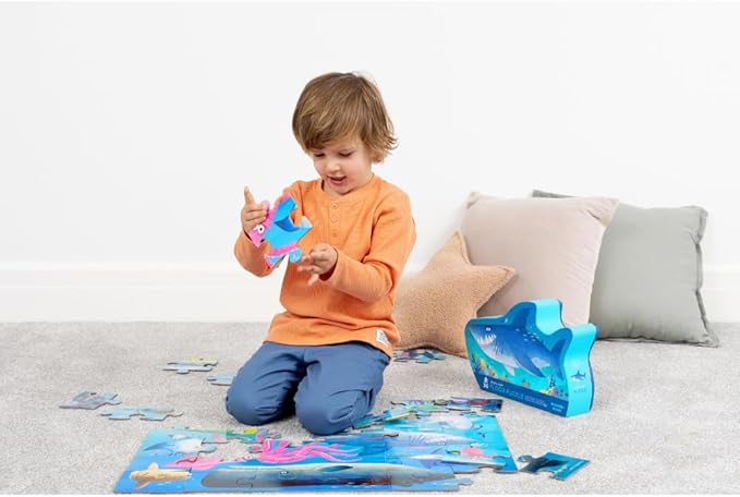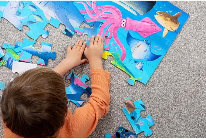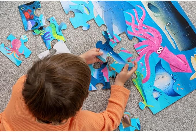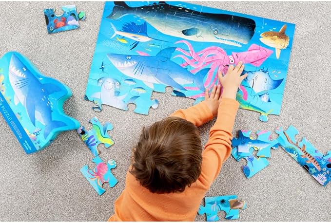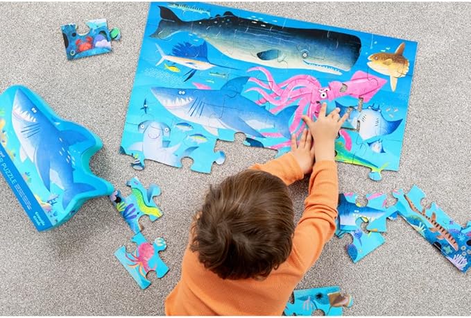 Crocodile Creek 36-Piece Jigsaw Floor Puzzle - Fun Floor Puzzles for Kids Ages 3-5 - Heavy-Duty Shaped Box for Storage - Shark Reef - 24" W x 18" H Finished