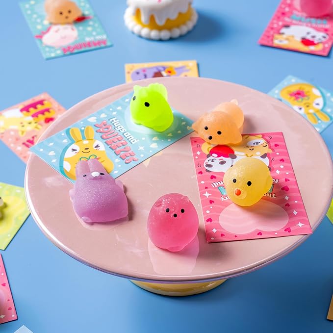 About This SUPER VALUE PACK. Our 28 Packs Valentine Cute Glitter Mochi squishy toy Set includes 28 gift cards with... Read more