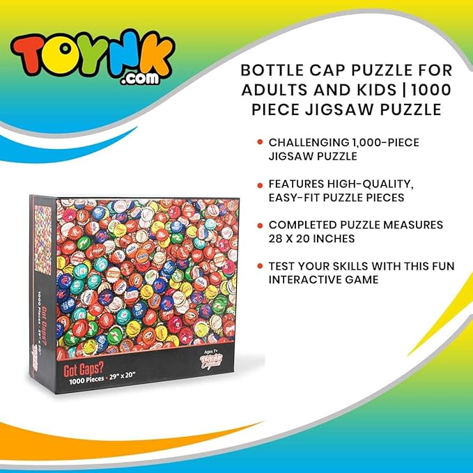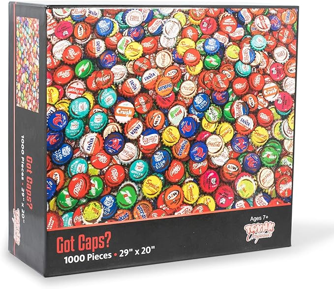 Got Caps? Soda Bottle Cap Puzzle for Adults and Kids | Difficult 1000 Piece Jigsaw Puzzle Toy | Fun Quarantine Gift | Interactive Brain Teaser Challenge for Game Night | 29 x 20 Inches