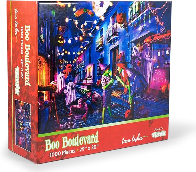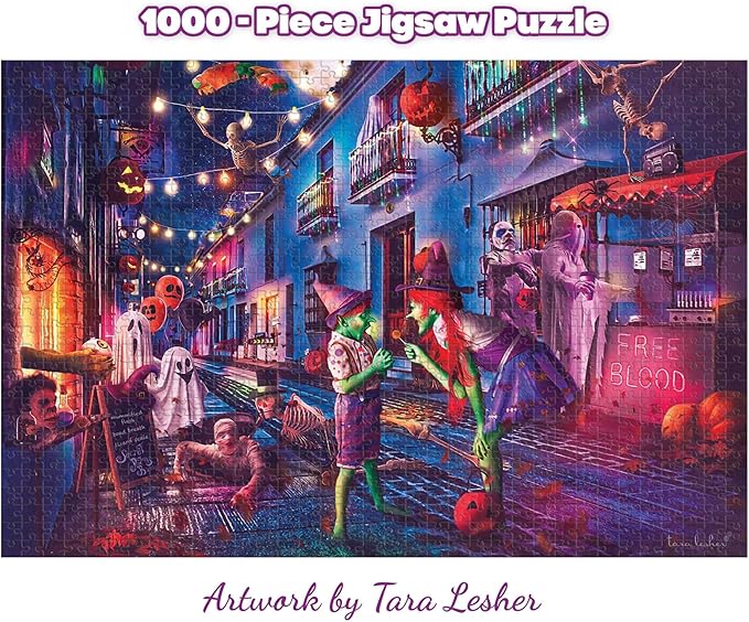 Boo Boulevard Halloween Puzzle by Tara Lesher | 1000 Piece Jigsaw Puzzle for Adults and Kids | Interactive Brain Teaser for Family Game Night | 29 x 20 Inches