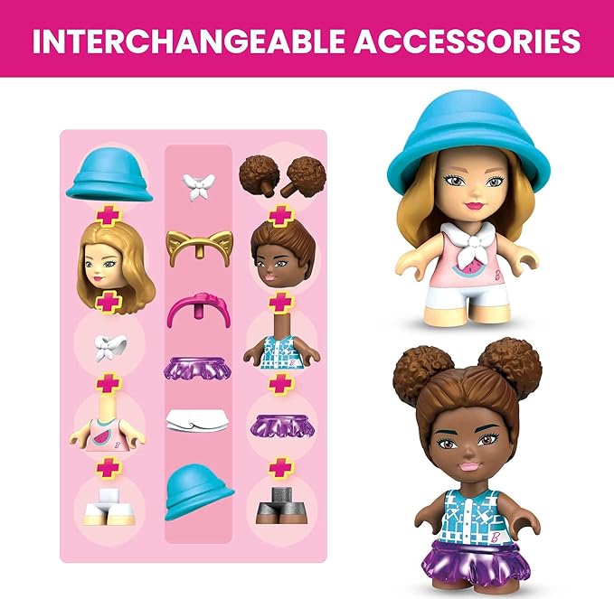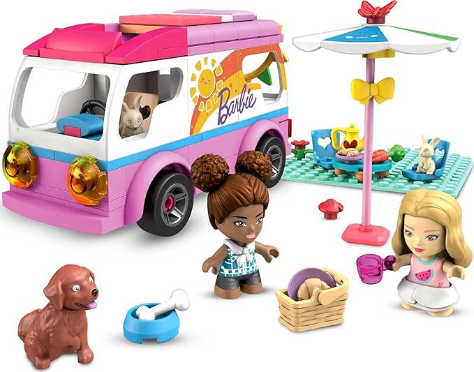 MEGA Construx Barbie Kids Building Toy Set, Adventure DreamCamper with 123 Pieces, 2 Micro-Dolls, Furniture and Accessories, Pink, Ages 5+ Years