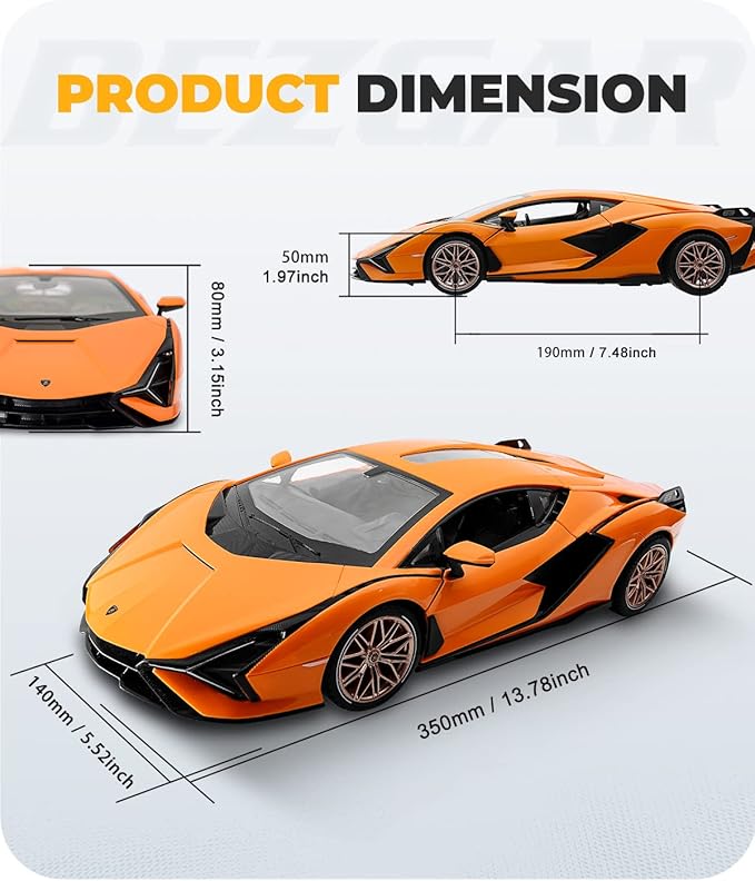 BEZGAR Remote Control Car - 1:14 Lambo Sián FKP 37 Electric Sport Racing Toy Car with Open Door, 2.4Ghz Licensed RC Car Series for Girls and Boys Age 8 9 10 11 12 Years Holiday Ideas Gift (Orange)