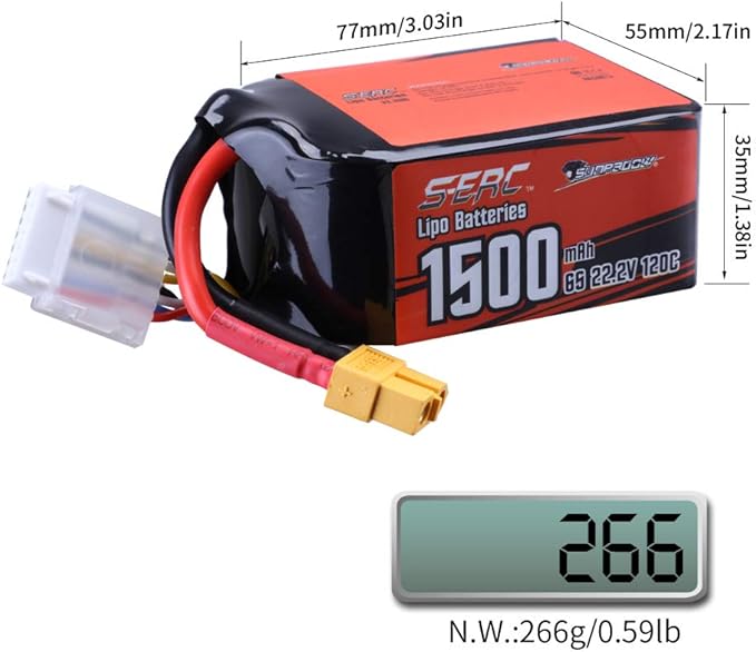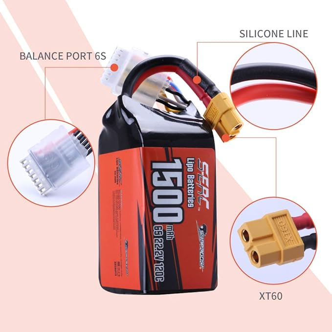 SUNPADOW 6S Lipo Battery 22.2V 120C 1500mAh with XT60 Connector Rechargeable for RC FPV Airplane Quadcopter Helicopter Drone (2 Count)