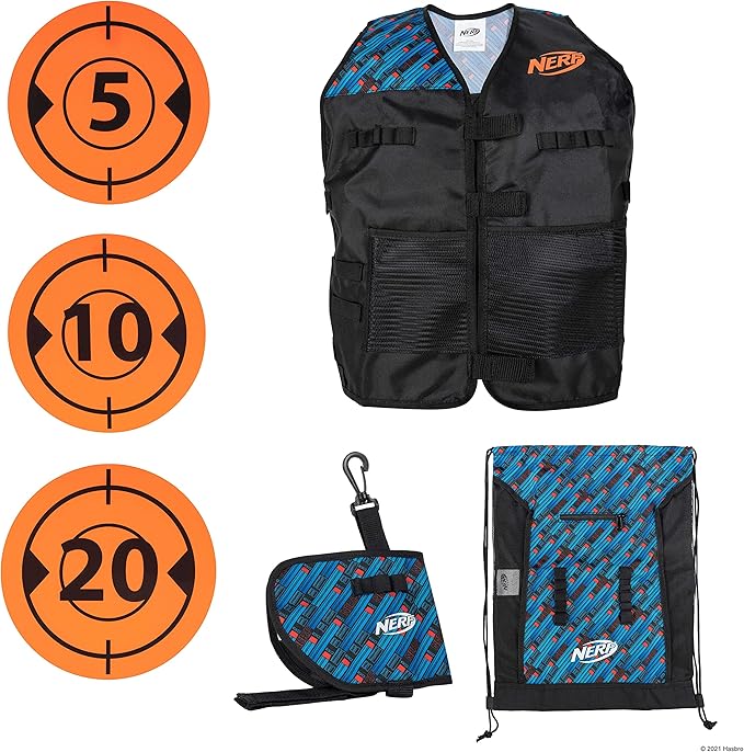 Nerf Elite Deluxe Tactical Gear Pack - Tactical Vest with Hip Holster, Cinch Backpack, and 5 Targets - Blast Into Battle