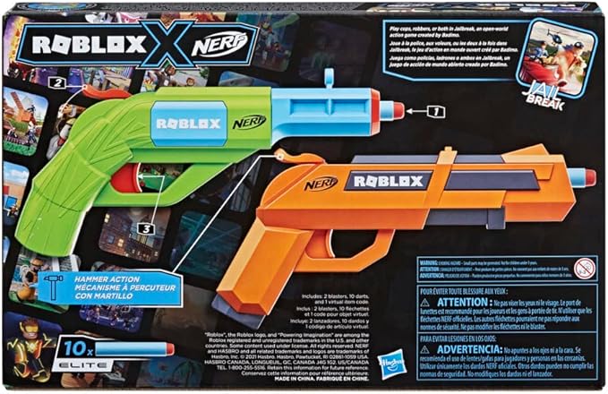 Nerf Roblox Jailbreak: Armory, Includes 2 Hammer-Action Blasters, 10 Elite Darts, Code to Unlock in-Game Virtual Item