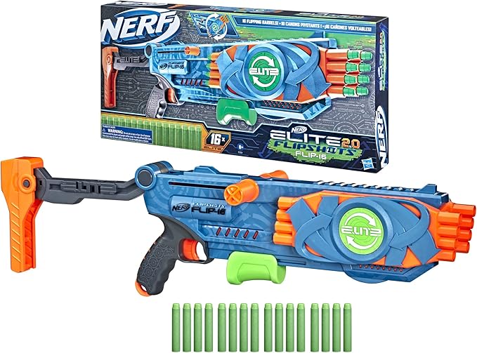 Nerf Elite 2.0 Flipshots Flip-16 Blaster with 16 Dart Barrels That Flip to Double Your Firepower, 16-Dart Capacity, 16 Elite Darts