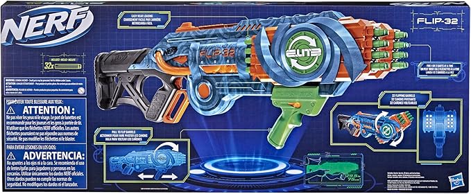 Nerf Elite 2.0 Flipshots Flip-32 Blaster, Rotating Dart Barrels, 32-Dart Capacity, 32 Elite Darts, Toy Foam Blasters, Kids Outdoor Games & Toys for Boys & Girls
