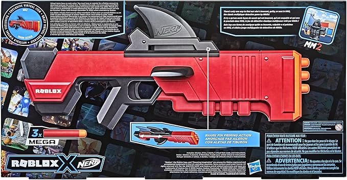 About This NERF ROBLOX MM2: SHARK SEEKER DART BLASTER: This dart-firing blaster takes its inspiration from the Roblox game MM2... Read more