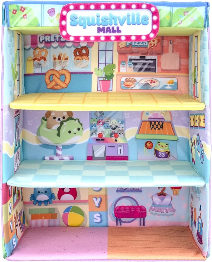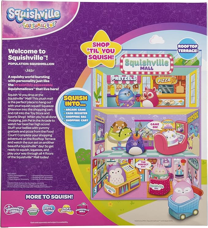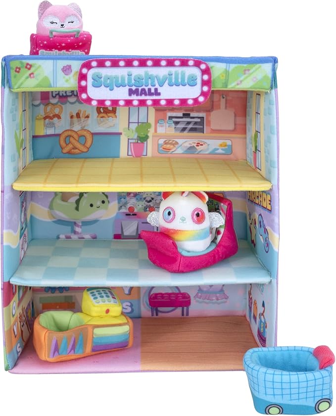 Squishville Squishmallows Mall-Two 2-Inch Mini Plush Characters,Themed Play Scene,4 Accessories (Shopping Bag/Cart,Cash Register,Arcade Machine)-Amazon Exclusive