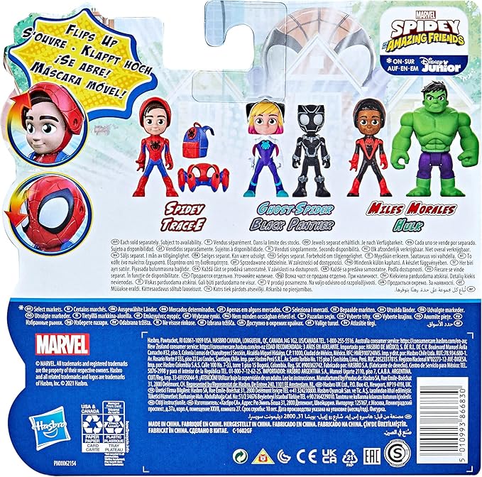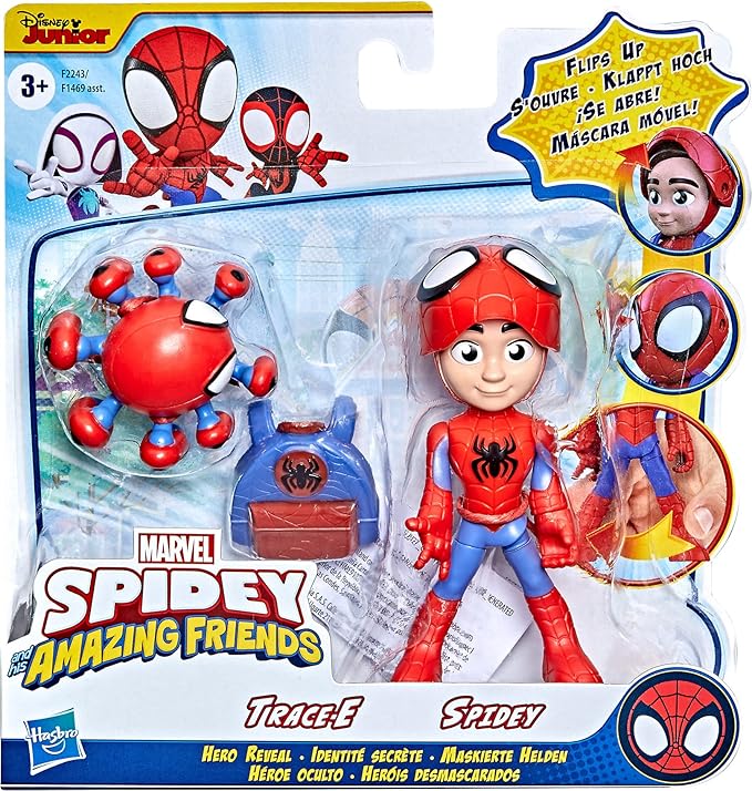 Spidey and His Amazing Friends Marvel Hero Reveal 2-Pack, 4-Inch Scale-Action Figures,-Mask Flip Feature, Spidey and Trace-E, 3 and Up