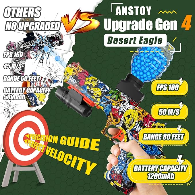 Anstoy Electric Gel Gun Blaster, Automatic Gel Ball Blaster with Goggles, Orby Toy with Sight for Outdoor Backyard Team Games, Rechargeable Splat Toy, for Ages 14+ - Angry