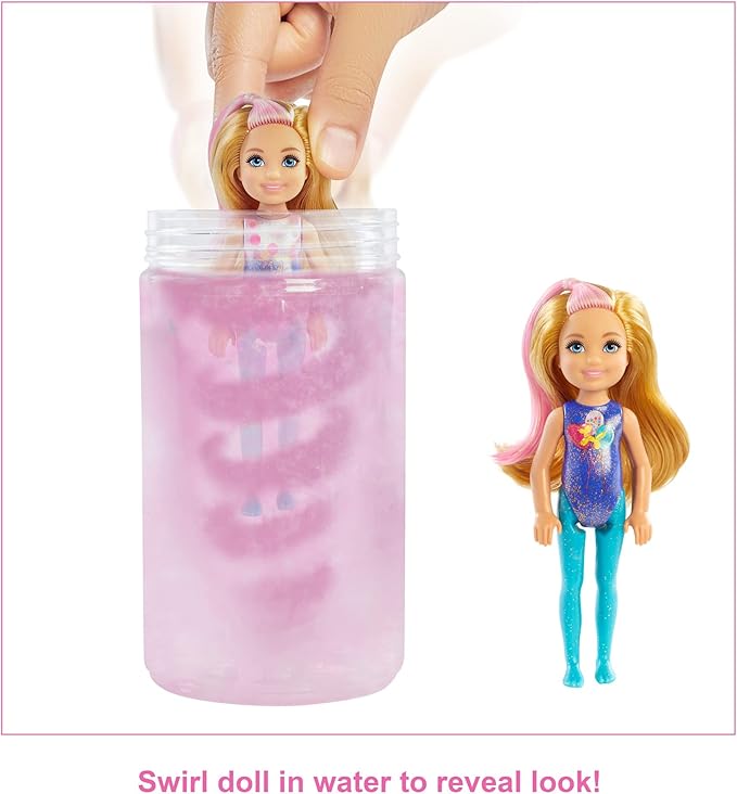 Barbie Chelsea Color Reveal Doll & Accessories, 6 Surprises Include Small Doll, Clothes & Color Change on Hair (Styles May Vary)
