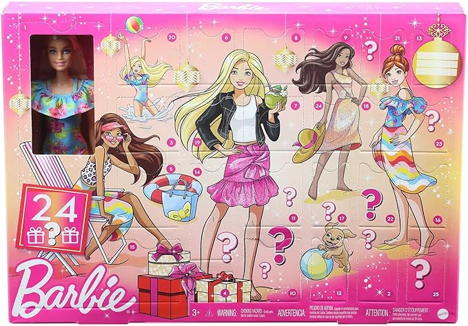 Barbie Advent Calendar with Barbie Doll (12-in), 24 Surprises Including Day-to-Night Trendy Clothing & Accessories, Festive Holiday Themed Packaging for Kids 3 to 7 Years Old