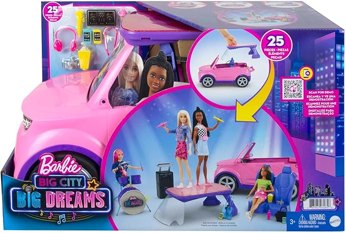 About This This Barbie vehicle playset inspired by Barbie: Big City, Big Dreams transforms to reveal a stage and seating... Read more