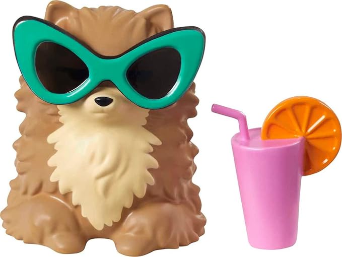 Barbie Extra Doll & Accessories with Long Pigtails & Rainbow Hair Ties in Shorts & Furry Shrug with Pet Pomeranian