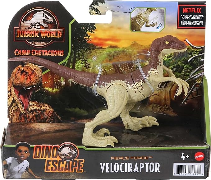 Jurassic World Toys Fierce Force Velociraptor Camp Cretaceous Dinosaur Action Figure Movable Joints, Realistic Sculpting & Single Strike Feature, Kids Gift Ages 3 Years & Older