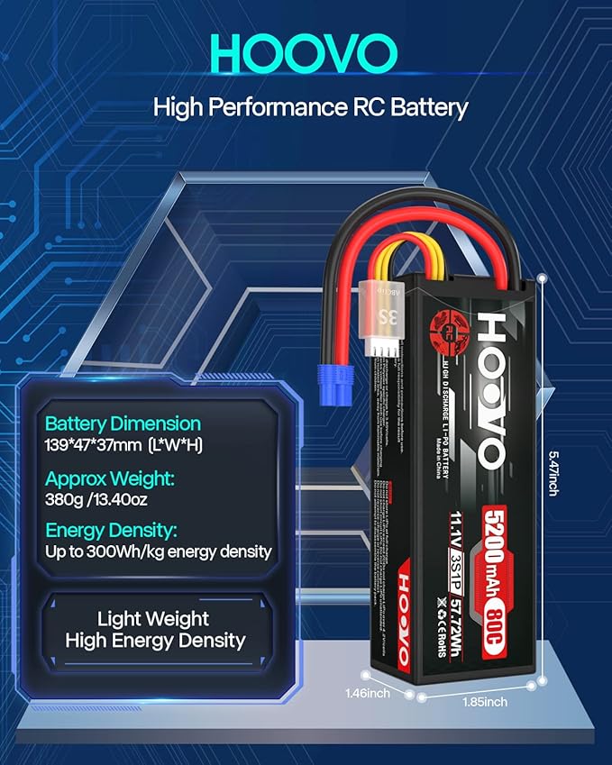 About This HOOVO 5200mAh 3S Lipo High Performance: High capacity, Long Cycle Life (150 times at least), up to 200Wh/kg... Read more