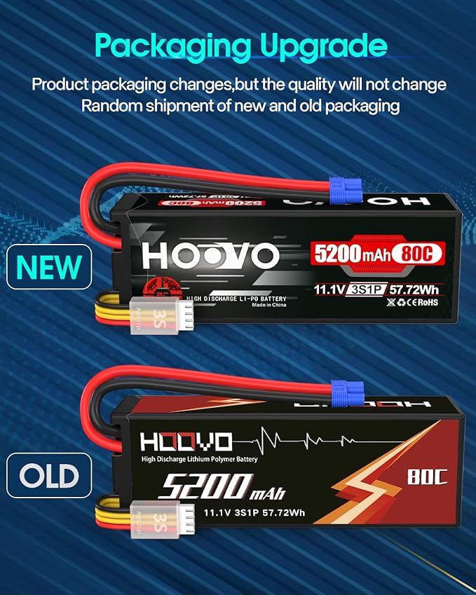 HOOVO 11.1V 3S Lipo Battery 5200mAh 80C Hard Case with EC3 Connector for RC Car Boat Truck Heli Airplane Hobby FPV Racing