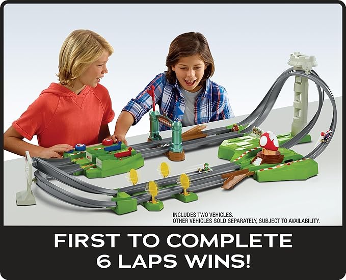 Hot Wheels Mario Kart Circuit Track Set & 2 Toy Vehicles, Racing Playset Includes Booster, Plus Mario & Yoshi Karts (Amazon Exclusive)