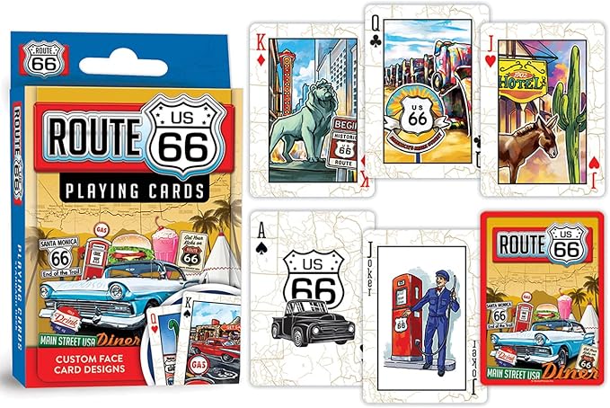 About This Officially Licensed Route 66 Playing Cards - 54 Card Deck 52 high quality Cardstock playing cards and 2... Read more