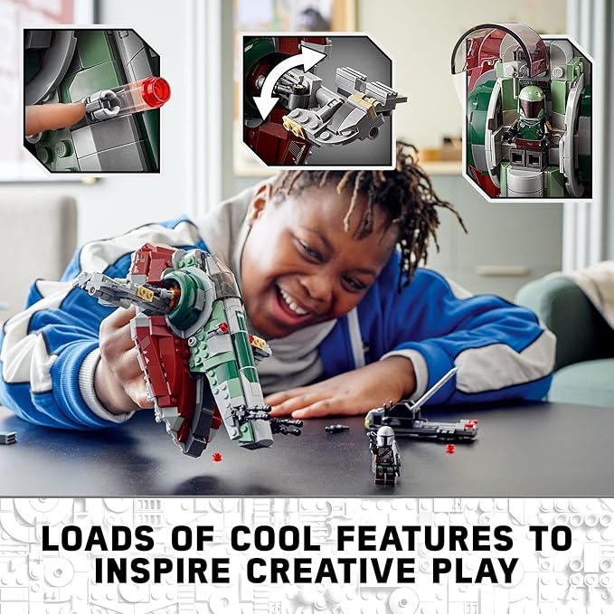 About This Starship Model Features - LEGO brick buildable model of Boba Fett’s Starship, handle for easy flying, rotating wings,... Read more