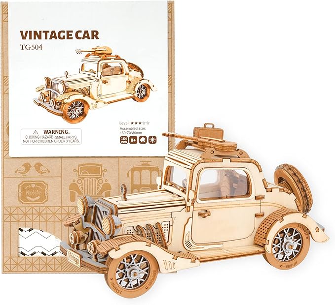 ROBOTIME 3D Wooden Puzzles Car DIY Model Kits to Build Wooden Model Vintage Car Craft Gift for Collection Lover