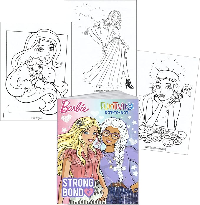 Activity Book Barbie Funtivity Dot-to-Dot Activity & Coloring Book Set for Kids Toddlers - Set of 2 Books 'Bright Ideas' & 'Strong Bond'