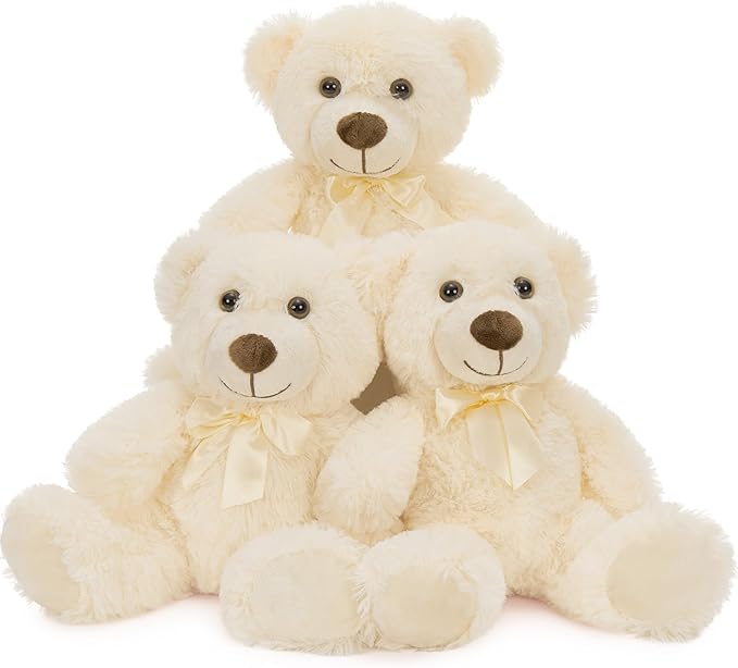 MaoGoLan 3 Pieces Bulk Soft Beige Stuffed Animals, 13.5" Cuddly Mini Teddy Bears for Baby Shower, Wedding, Party, Engagement