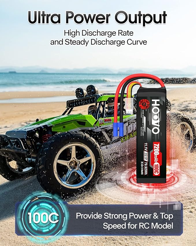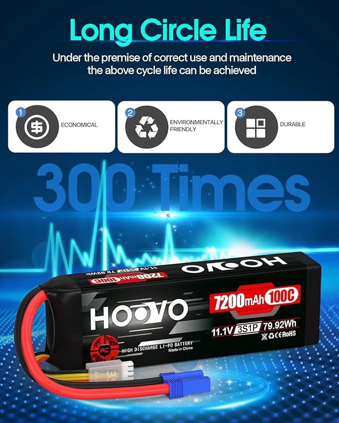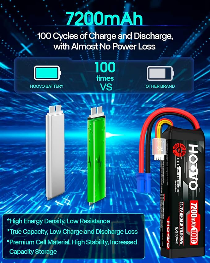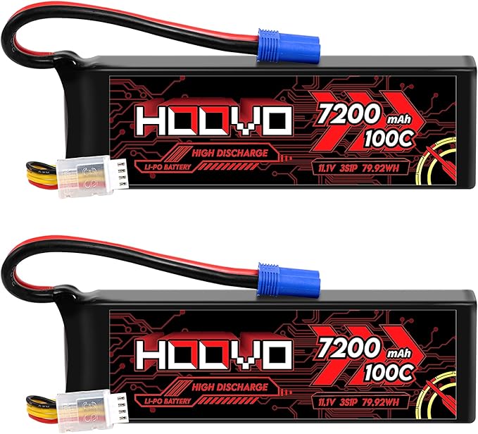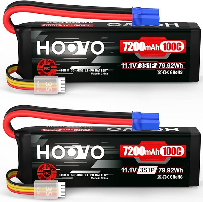 HOOVO 3S 11.1V LiPo Battery 7200mAh 100C RC Battery Softcase EC5 Plug for 1/10 & 1/8 Scale Vehicles VXL RC Cars Boats Planes Drones.