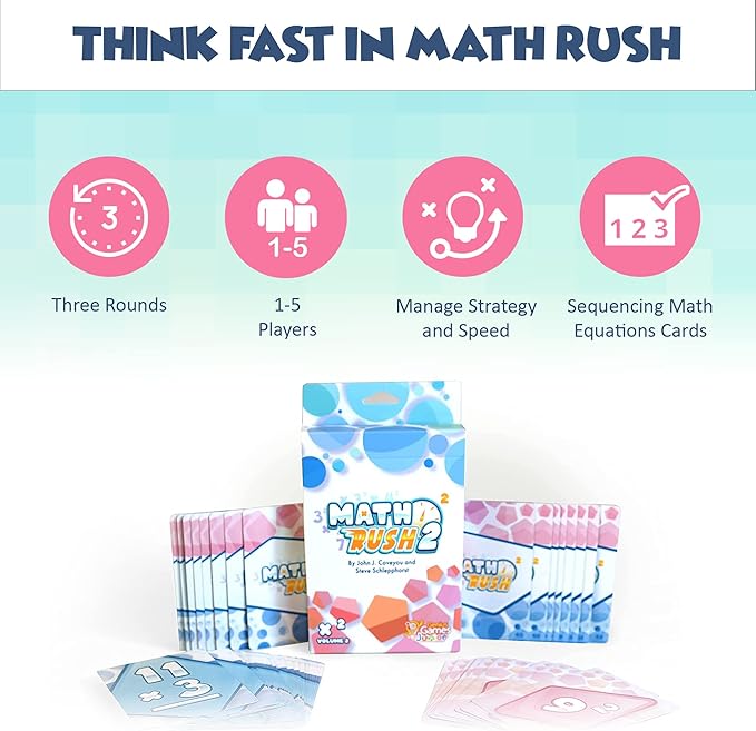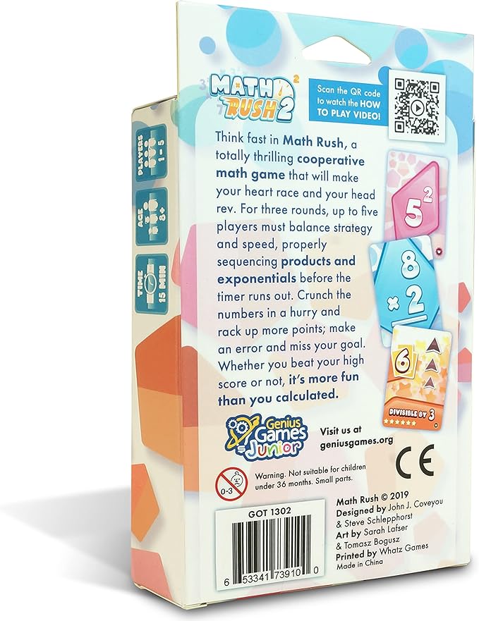 Genius Games Math Rush 2: Multiplication & Exponents - A Cooperative Time-Based Educational Math Flash Card Game for Kids, Students, and Families | STEM Game to Master Mental Math Skills
