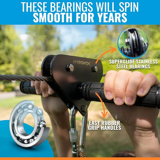 Zip Line Kit for Kids and Adults, 100/120/150/200 ft, Up to 350 Lbs, Removable Trolley, Rustproof Stainless Steel, Quick Setup with Ratchet, Safety Harness, Backyard Adventure Fun W/Climbing Holds