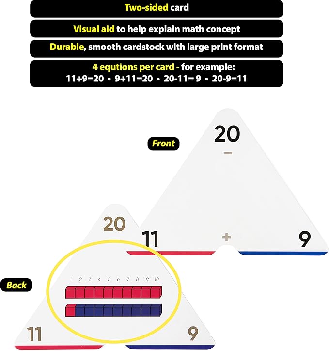 About This ✅ LEARN ADDITION & SUBTRACTION: 94 addition and subtraction triangular flash cards for kindergarten, first, second, or third... Read more