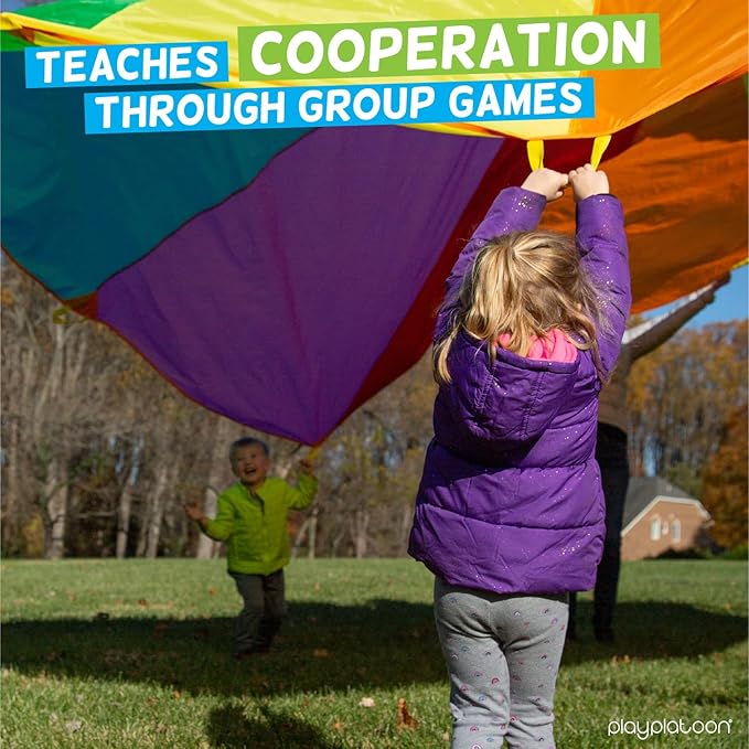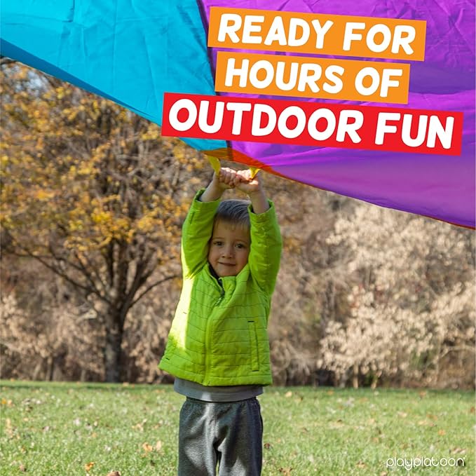 Play Platoon Rainbow Parachute Toy for Kids, 20 ft Parachute Game with 16 Handles for Kids, Elementary School Gym Class PE Equipment, Backyard/Indoor Play Equipment