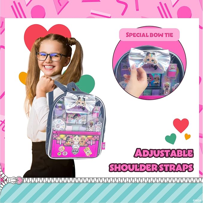 Townley Girl L.O.L. Surprise! Makeup Filled Backpack Set, Including Lip Balm, Nail Polish, Nail File, Hair Bows, and Other Accessories, Perfect for Parties, Sleepovers and Makeovers, Ages 3
