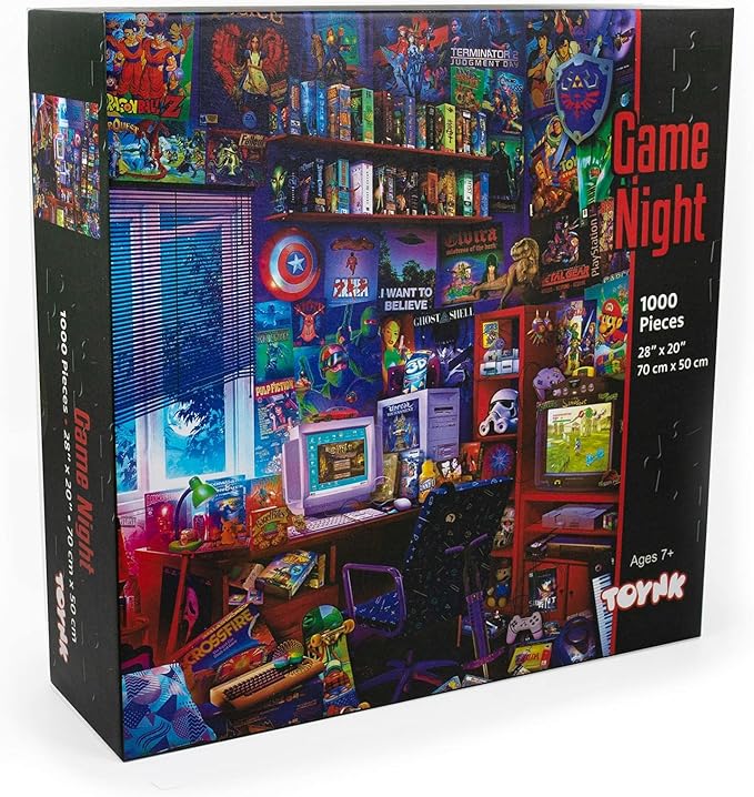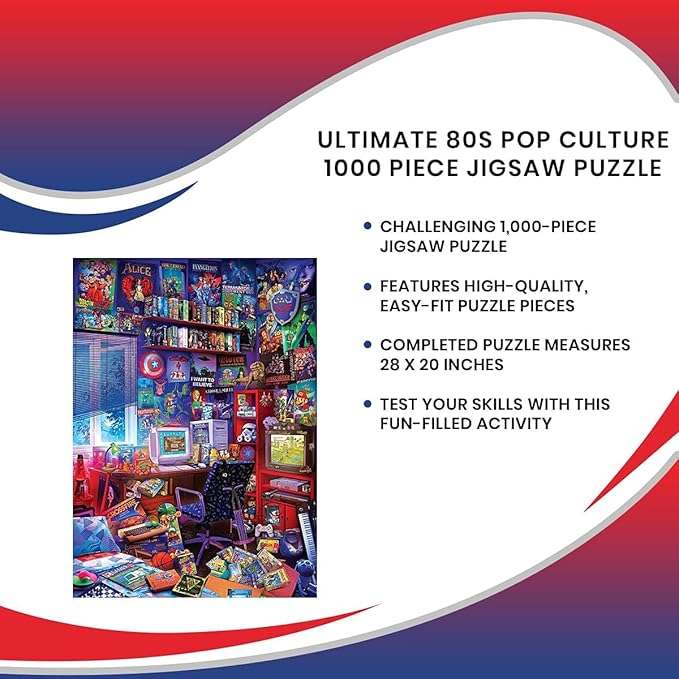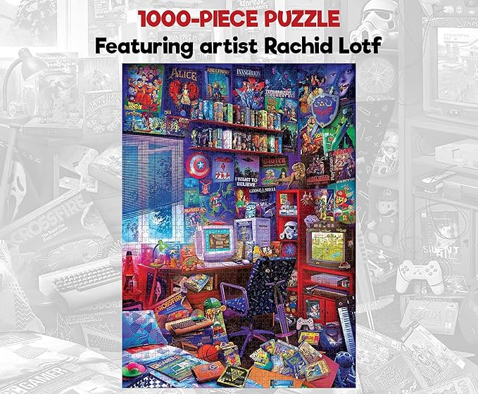 '80s Game Room Pop Culture 1000 Piece Jigsaw Puzzle by Rachid Lotf | Interactive Brain Teaser, Educational Toys & Games for Kids and Adults | 28 x 20 Inches