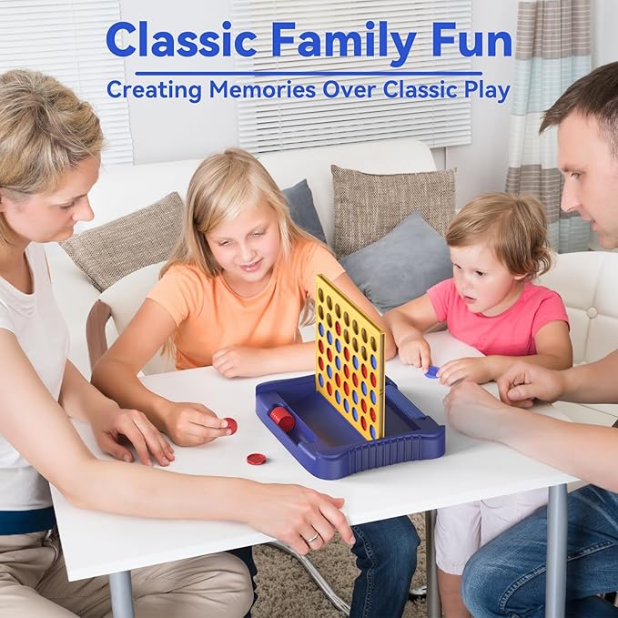 4 in a Row Game Large, Board Game for Kids, Four in a Line, Line Up 4, Classic Family Fun Games for 3 4 5 6 7 8 9+ Year Old Children Boys Girls Adults Yellow (6 Spare Discs Included)