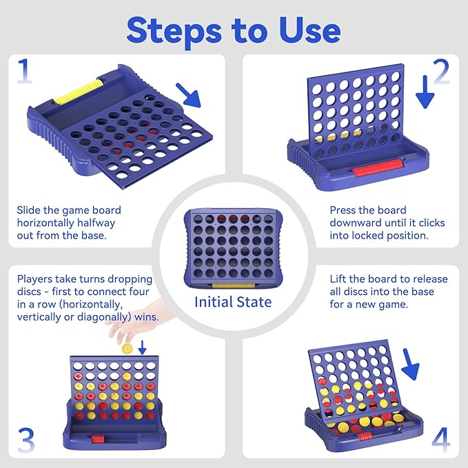 4 in a Row Board Games for Kids Ages 3+, Early Idea for Boys Girls Teens, Connect & Win Four in a Line, Portable 2-Player Strategy Games,Foldable Design with 6 Spare Discs (Blue)