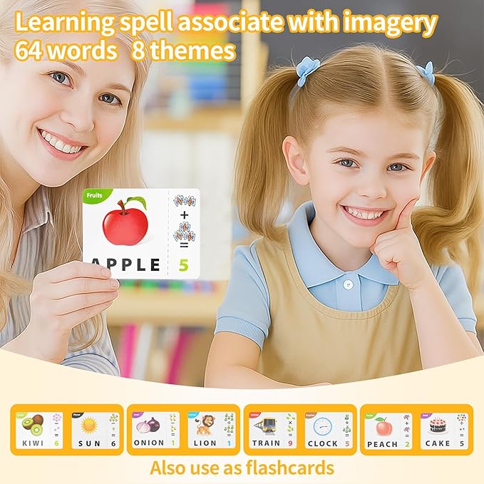 Educational Toys for Kids Ages 3-8, Matching Letter Spelling Game ABC Math Learning, Xmas Birthday Party Gifts for 3 4 5 6 7 8 Year Olds Boys and Girls Yellow