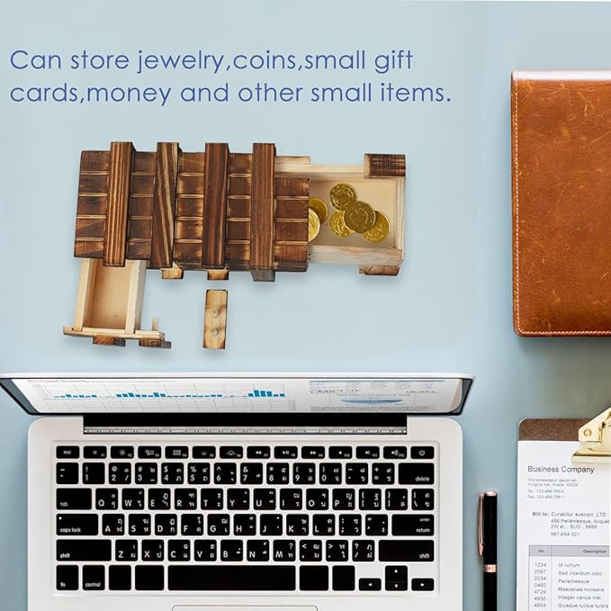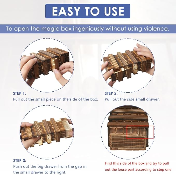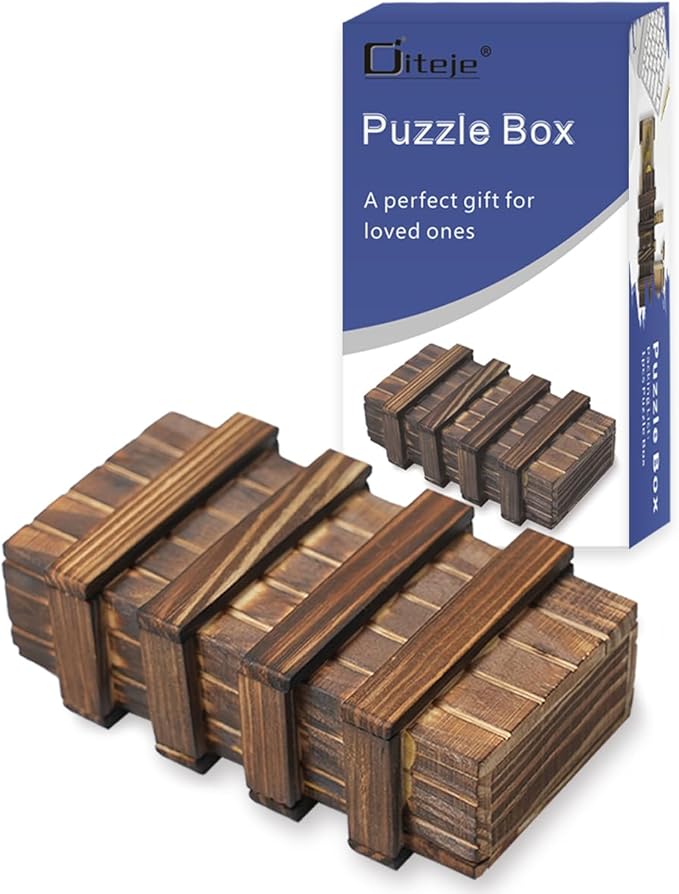 Diteje Puzzle Box, Magic Wooden Boxes Case Card Holders with Secret Hidden Compartment for Adults and Kids