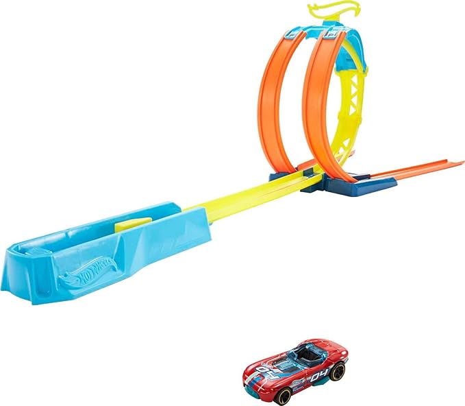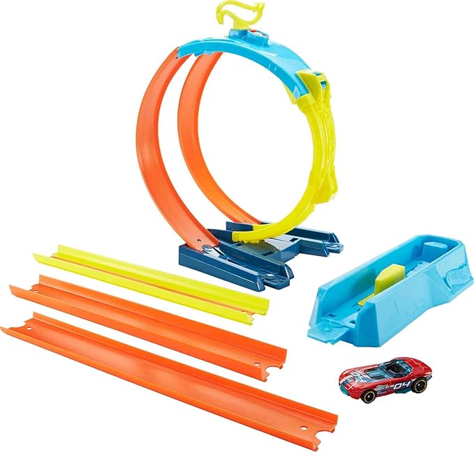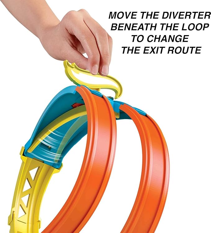 Hot Wheels Toy Car Track Set, Track Builder Playset, Split Loop Pack & 1:64 Scale Vehicle, Compatible with Other Sets & Tracks