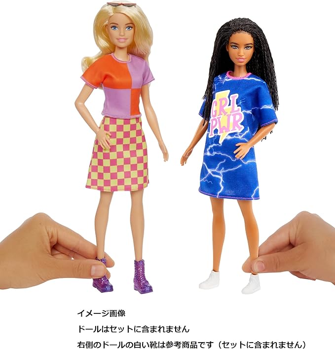 Barbie Fashions 2-Pack Clothing Set, 2 Outfits Doll Include Color-Blocked Shirt with Checkered Skirt, “GRL PWR” Dress & 2 Accessories