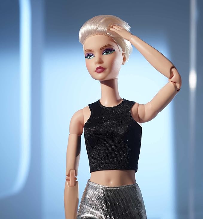 Barbie Signature Looks Doll (Original, Blonde Pixie Cut) Fully Posable Fashion Doll Wearing Black Crop Top & Metallic Skirt, Gift for Collectors