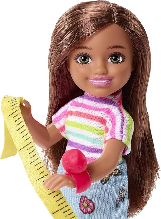 Barbie Chelsea Can Be Doll & Playset, Brunette Fashion Designer Small Doll with Removable Outfit & 8 Career Accessories