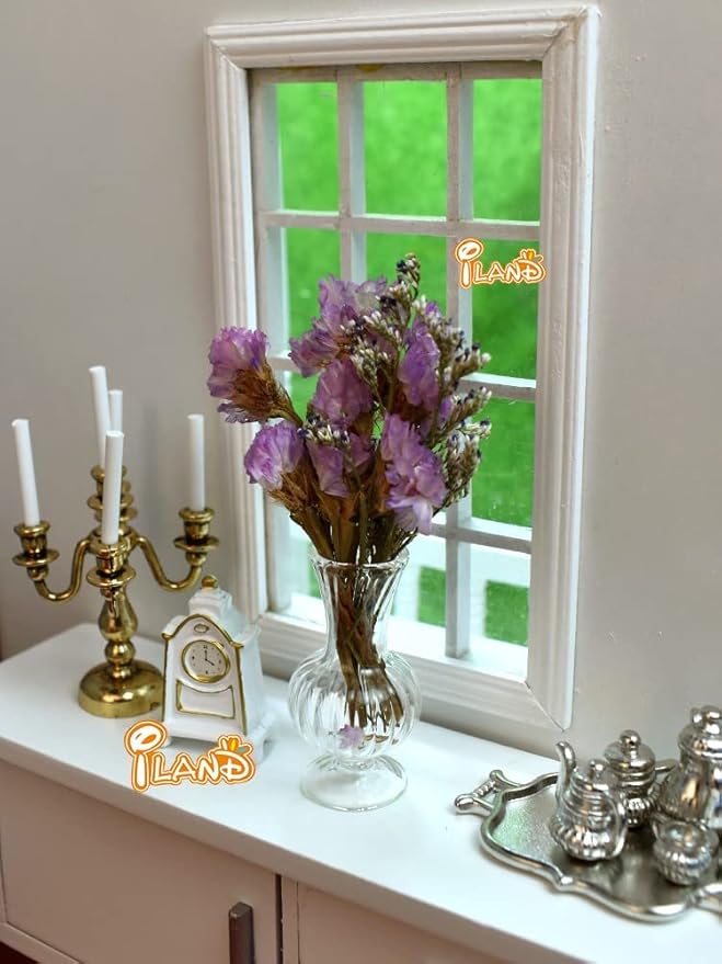iLAND Miniature Dollhouse Accessories fits Barbie Furniture, Glass Vases w/ Dried Flowers Set for Dollhouse Furniture Antique (Luxurious 3pcs)(Luxurious 3pcs)