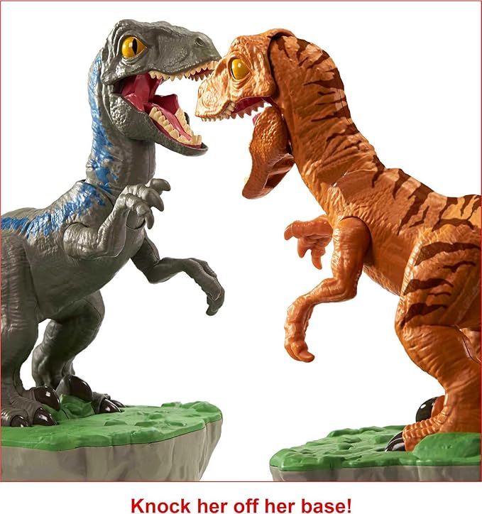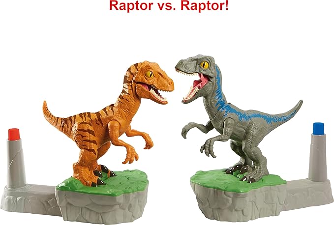 Mattel Games Rock 'Em Sock 'Em Raptors Jurassic World Domination Kids Game Fighting Raptors with Blue vs Atrociraptor