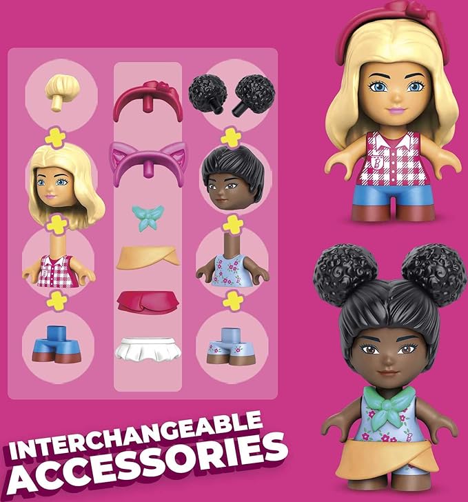 MEGA Barbie Toy Building Set - Farmer's Market With 3 Micro-Dolls, 4 Pets and Accessories - Easy To Build Set For Ages 4 and Up