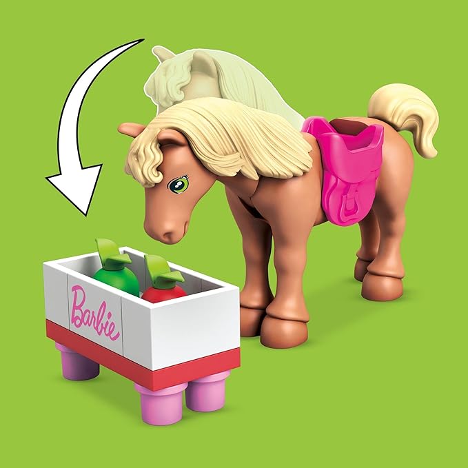 Mega Barbie Horse Jumping Building Set with 73 Bricks and Special Pieces, Accessories and 1 Micro-Doll, Toy Gift Set for Ages 5 and Up